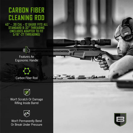 Our premium Breakthrough Clean Technologies® Carbon Fiber Cleaning Rods offer the safest way to clean the inside of your barrel. Featuring our Smooth Operator™ ergonomic handle and two premium ball bearing sets, the rod can smoothly migrate through the bore of your barrel without binding up under pressure. Its carbon fiber rod offers you the security of knowing you’ll never have to worry about scratching or damaging the rifling inside the barrel of your firearm. It’s lightweight yet durable carbon fiber construction is long lasting and won’t permanently bend or break under pressure.