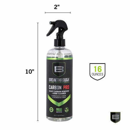The Breakthrough Clean Heavy Carbon Remover is a water-based cleaner that removes heavy carbon and lead deposits from your firearm. Utilizing a proprietary blend of chemical surfactants and detergents, our degreaser effectively neutralizes all corrosive residues, especially on the gun's barrel and bore. It prevents damaging rust and corrosion without etching or harming the barrel’s steel surface. Primarily used to clean and maintain firearms, this carbon remover also works on cars, aircrafts, boats, and motorcycles.