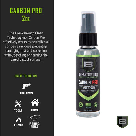 The Breakthrough Clean Heavy Carbon Remover is a water-based cleaner that removes heavy carbon and lead deposits from your firearm. Utilizing a proprietary blend of chemical surfactants and detergents, our degreaser effectively neutralizes all corrosive residues, especially on the gun's barrel and bore. It prevents damaging rust and corrosion without etching or harming the barrel’s steel surface. Primarily used to clean and maintain firearms, this carbon remover also works on cars, aircrafts, boats, and motorcycles.