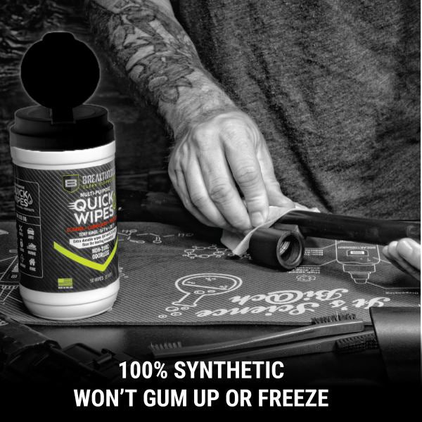 The Breakthrough Clean Multipurpose CLP Gun Cleaning Wipes act as a cleaner, lubricant, and protectant designed to clean and condition in one quick and easy step without sacrificing performance. Formulated from the same chemical platform as our flagship military-grade solvent and high-purity oil, our quick wipes provide exceptional protection across a wide range of temperatures. The extreme-pressure additives in these wipes provide superior resistance against rust and corrosion. These wipes are safe to use on all metal alloys, polymers, and finished stocks.
