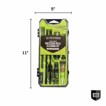 Our compact Breakthrough Clean Technologies® Vision Series™ .270 / .284 / 7mm Rifle Cleaning Kit offers you everything you need to ensure a thorough clean. Its plastic tray keeps all the various pieces of the kit organized neatly inside a durable case that acts like a mini toolbox. These cleaning kits come with cleaning rod sections, various hard bristle nylon brushes, jags, patch holders, and cotton patches. Also included is our durable and detachable aluminum handle with knurling for an easy grip and our mini bottles of Breakthrough® Military-Grade Solvent and Battle Born High-Purity Oil.