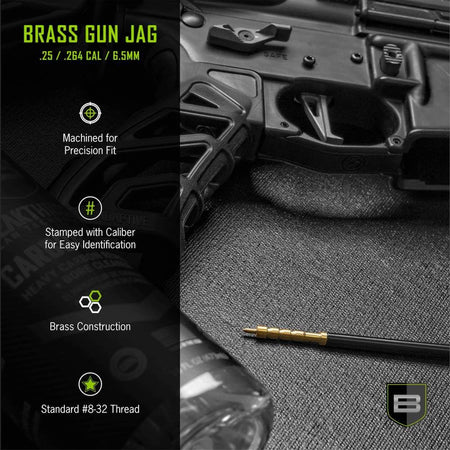 - GUN CLEANING TOOL: This .25 / .264 Cal / 6.5mm jag is fabricated from brass, is machined for precision fit & is stamped with the specific caliber. Thread size is a standard #8-32 & is designed to be used with any cleaning rods.