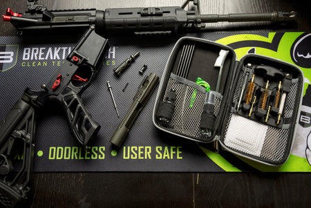 Our compact Breakthrough Clean Technologies® Shield Series Cleaning Kit offers you everything you need to ensure a thorough clean of your pistol, rifle, or shotgun. The cleaning kit comes in a sleek, durable EVA zippered carrying case and a snap-in tray to keep all the accessories protected and neatly organized. Cleaning kit come with a 15mL bottle of Breakthrough Military-Solvent and Degreaser, a 12mL bottle of our Battle Born High-Purity Oil, Phosphorus Bronze brushes, and other cleaning accessories to remove dirt, grime, and fouling. The Shield Kit Series was designed to clean most types of handguns, rifles, and shotguns and includes everything you need to keep your gun clean, maximizing performance. Perfect for the range or for at-home gun care maintenance. Our cleaning kit can be easily stored in your hunting backpack, range bag, or car.