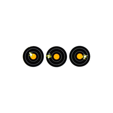 The EZ Aim® Adhesive Splash Reactive Paper Shooting Targets provides you with 1-inch adhesive bullseyes, you can peel and stick them on existing targets to cover up bullet holes to extend the life of your target. You can also make your own target by simply peeling the bullseye off the sheet and sticking it to a piece of paper. Wherever you need a bullseye this EZ Aim® target pack is for you.