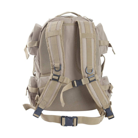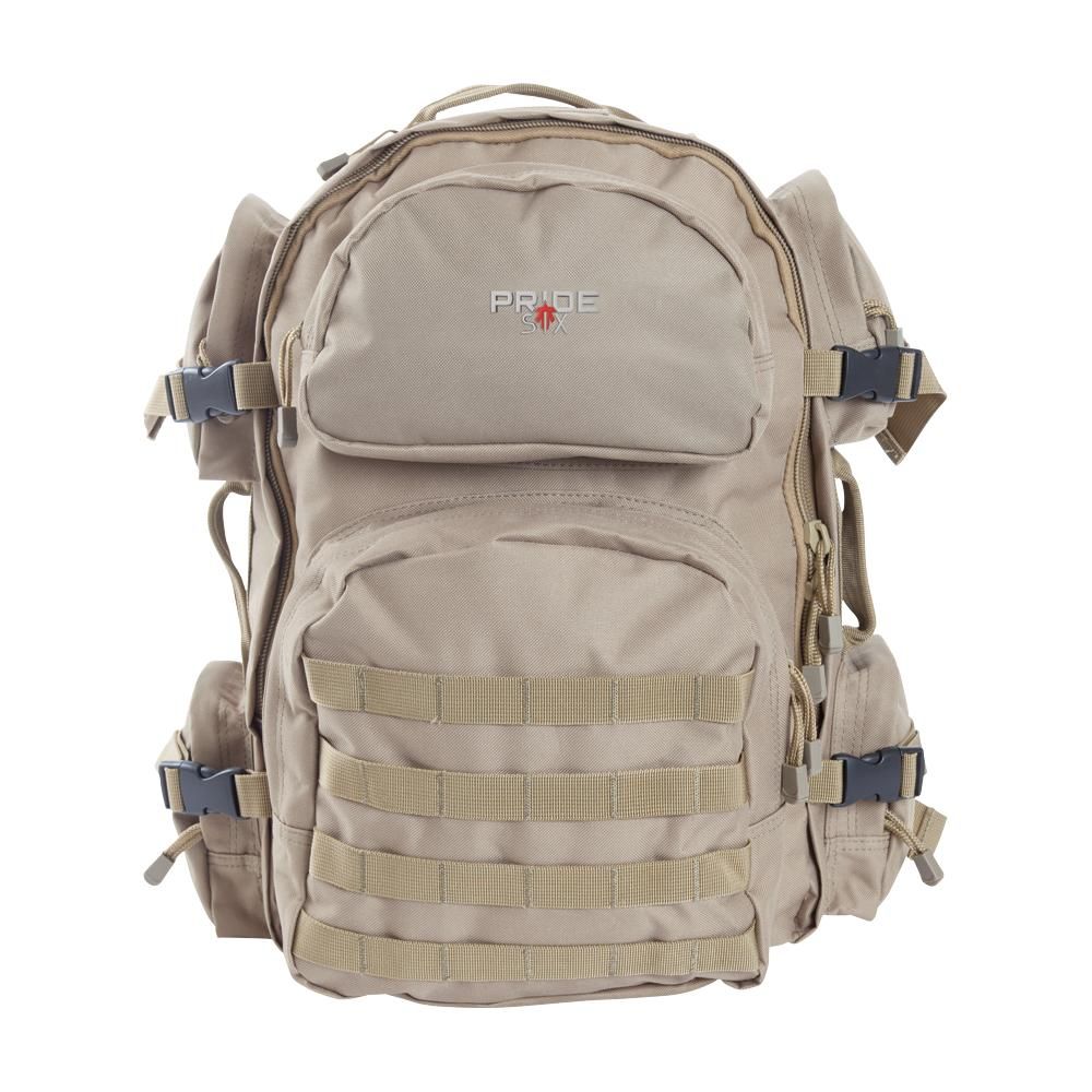 The Tac-Six™ Intercept Tactical Pack is a 2500 cubic inch capacity hydration compatible bag with internal organizer compartments, multiple external accessory pockets, an external MOLLE web system, and rugged Endura fabric construction. The pack also has compression straps, padded shoulder straps with an adjustable sternum strap, and side carry handles. Dimensions: 18.5-inches x 16-inches x 10-inches.