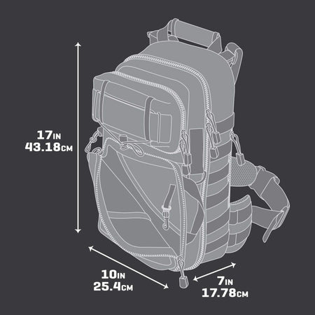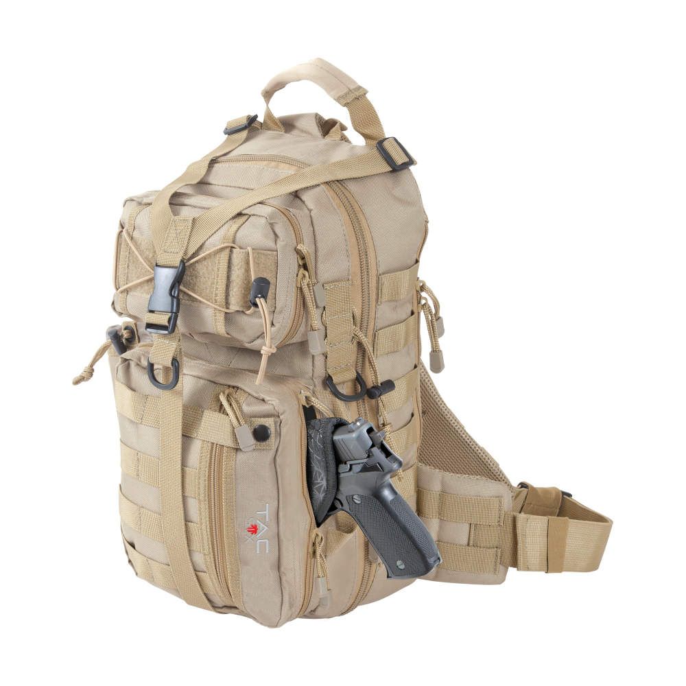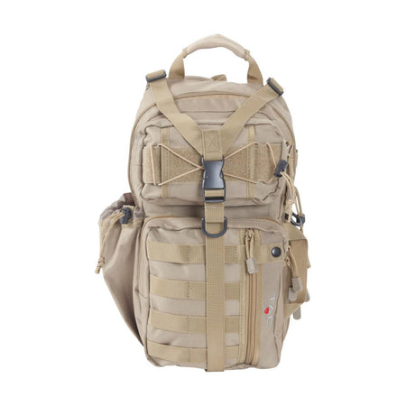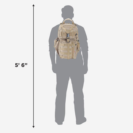 The Tac-Six™ Lite Force Tactical Sling Pack incorporates a sling design that gives you access to the pack without having to remove it. Conceal carry compatible and hydration ready, this pack has a 1200 cubic inch capacity, MOLLE system loops, a large main compression strap, water bottle, and sunglasses pockets. Constructed from rugged Endura fabric, the Lite Force Tactical Sling Pack also has a padded carry handle and a padded adjustable single sling strap. Dimensions: 18-inches x 9.75-inches x 7.5-inches.