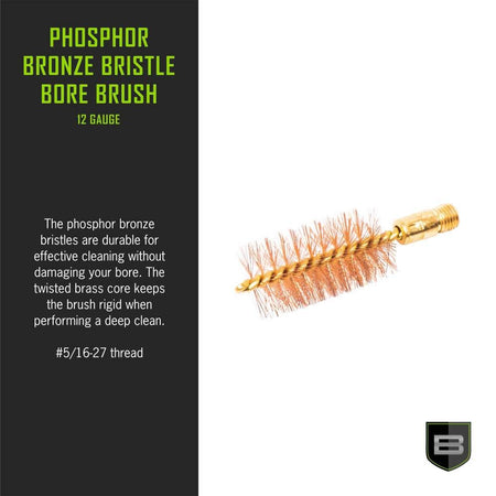 - GUN CLEANING BRUSH: This 12-gauge bronze bore brush features a #5-16-27 thread, rugged brass core & stiff bronze bristles to attack heavy carbon build-up in your firearm. Our gun brush is a handy accessory to add to your shotgun cleaning kit.