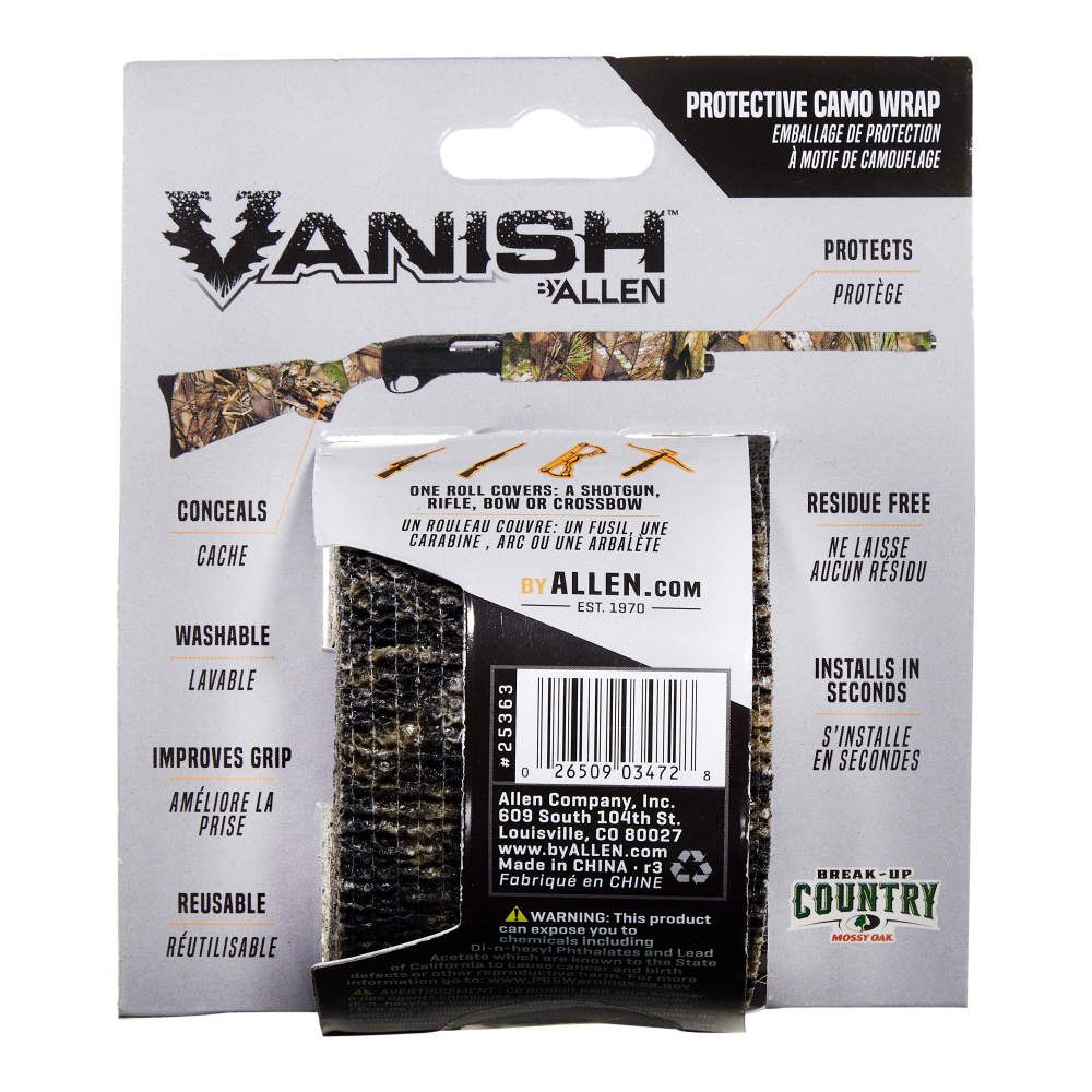 - VANISH CAMO WRAP: Used to cover & protect your shotgun, rifle, bow, or crossbow