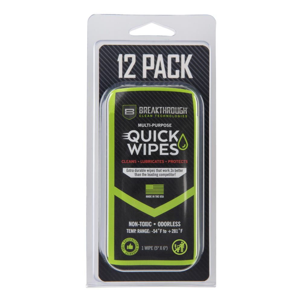 Our Breakthrough Clean Technologies® Multi-Purpose Quick Wipes act as a cleaner, lubricant, and protectant designed to clean and condition in one quick & easy step, without sacrificing performance. Formulated from the same chemical platform as our flagship Military-Grade Solvent and High-Purity Oil, our Quick Wipes are odorless, non-toxic, non-staining, and eco-friendly. The 100% synthetic-based oil will provide exceptional protection across a wide range of temperatures and the extreme-pressure additives provide superior resistance against rust and corrosion. This low viscosity solution penetrates deep into metal surface disparities to loosen stubborn carbon fouling and other contaminants and leaves behind a protective film that seals out moisture and minimizes friction and wear. Safe to use on all metal alloys, polymers, and finished stocks.