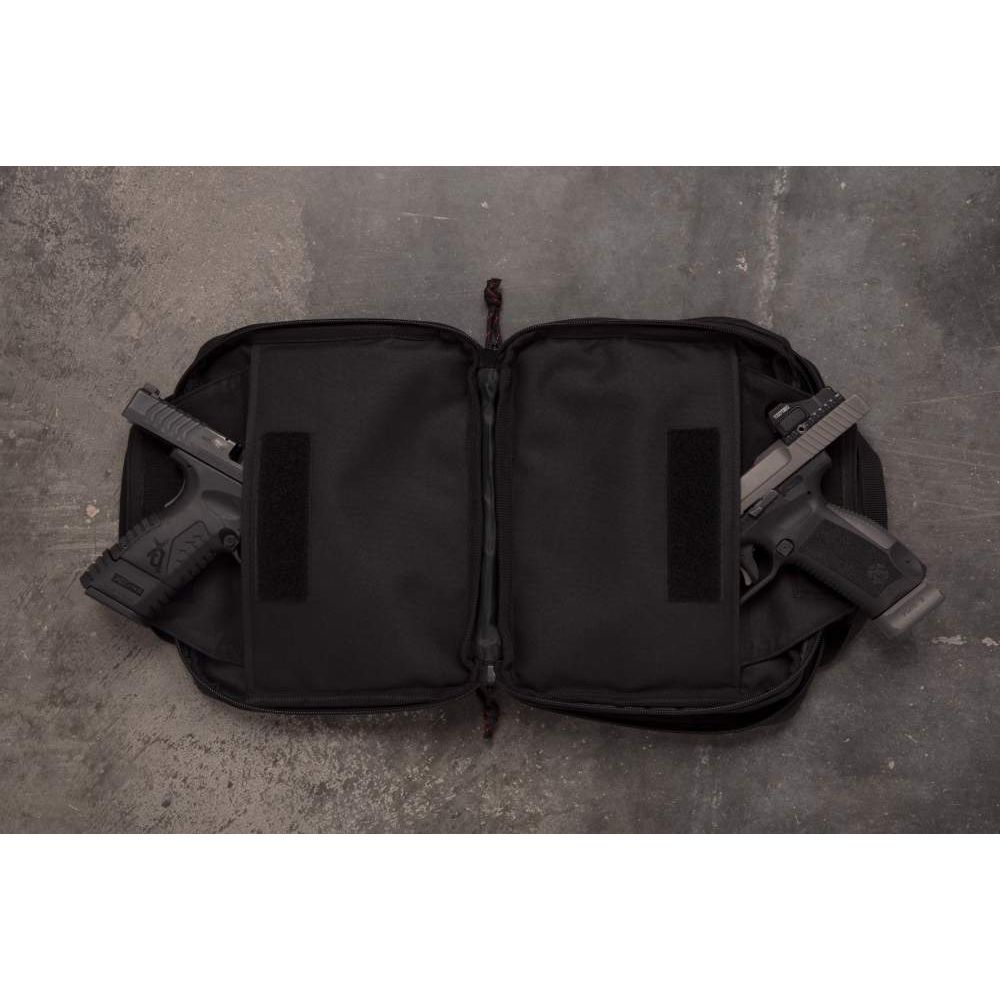 - DOUBLE COMPARTMENT HANDGUN CASE: Store 2 pistols safely & securely in the lockable, double compartments as well as plenty of elastic loops for mags & other accessories.