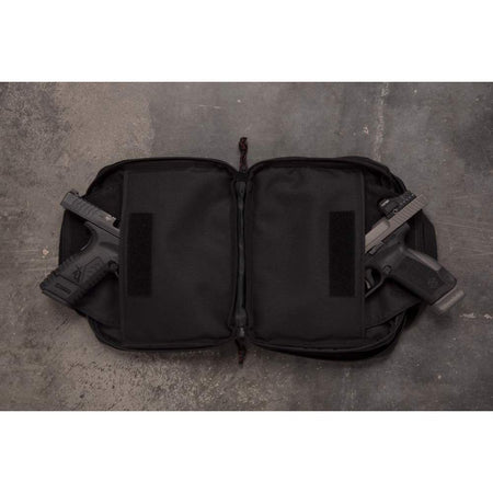 The Tac-Six™ Crew Dual Tactical Pistol Case features an all-weather, durable 600D polyester storage solution, designed for two handguns, with very functional and convenient features. This ideal sidearm case helps you transport two pistols, enough mags, and additional shooting accessories with spacious pockets and organization. Pistol compartments are lockable for additional security while the laser cut MOLLE system enables you to attach and customize for the accessories you need most.