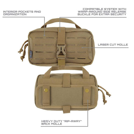 - TACTICAL MOLLE GEAR: Laser cut MOLLE panel system allows you to customize & attach accessories for when you need them mostaccessory pouch exterior measures 9-inches long x 5-inches wide x 3-inches high.